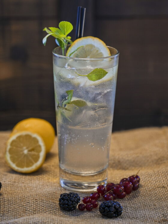 ◊ Συμπληρώνουμε την σόδα και 1 φέτα λεμόνι στρογγυλή.
