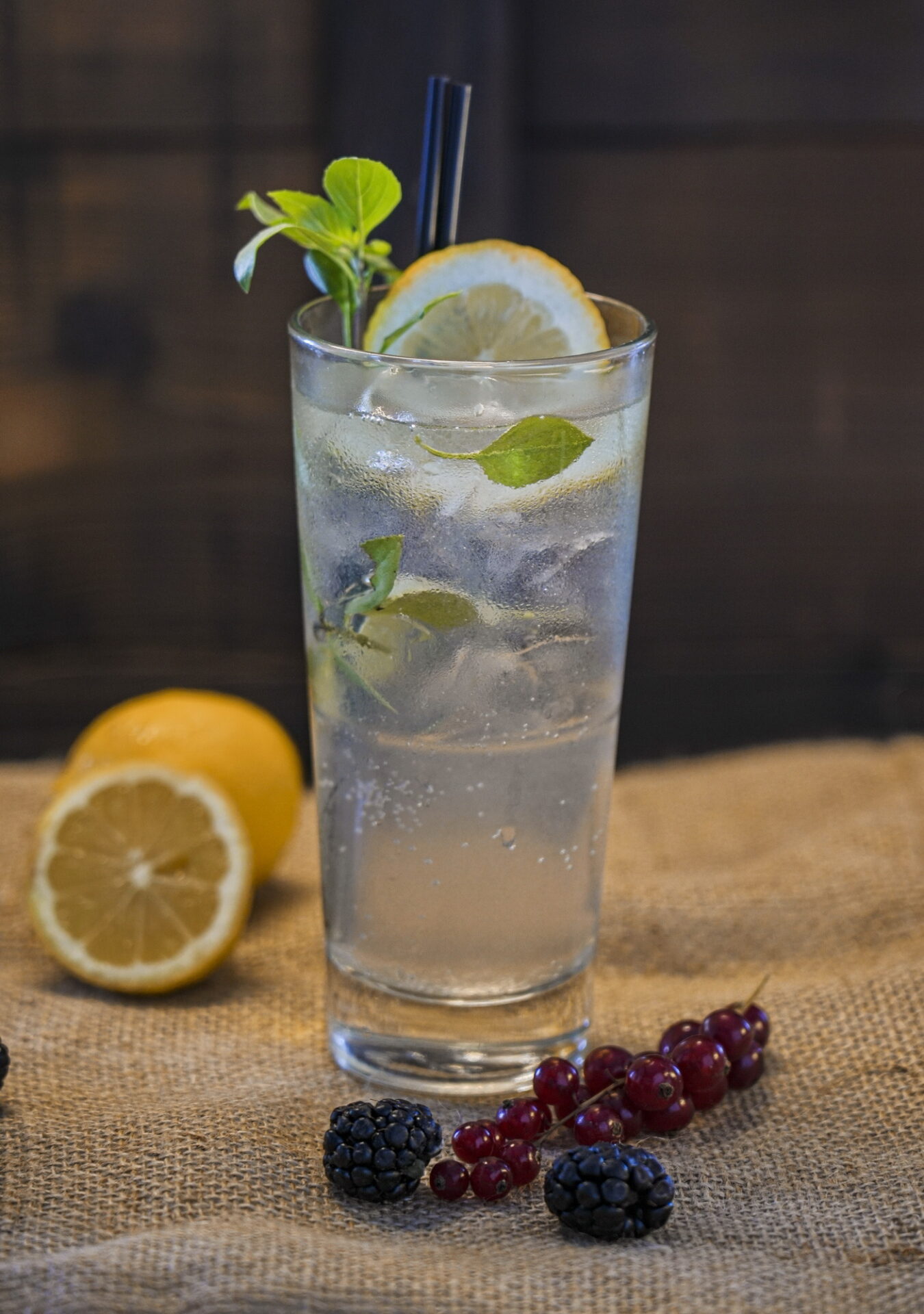 ◊ Συμπληρώνουμε την σόδα και 1 φέτα λεμόνι στρογγυλή.